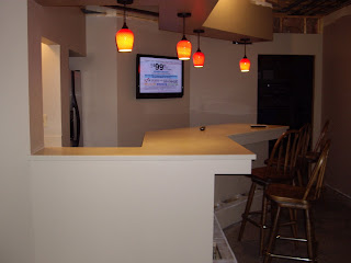 All we lack at this point is a small piece of trim in the bathroom and some carpet. It will happen after the first of the year probably. We've already had several drinks at the bar and guess what? It works! Yay!